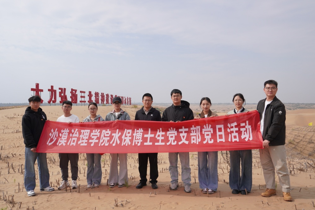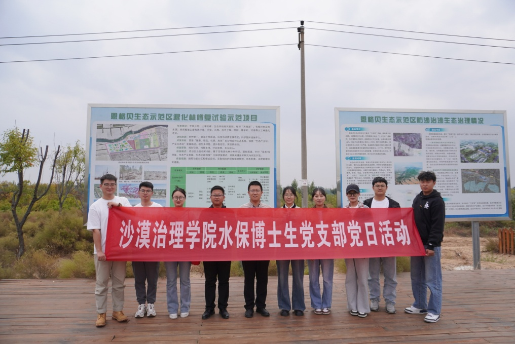 为深入贯彻落实习近平总书记在内蒙古考察时关于加强荒漠化综合防治、筑牢祖国北疆万里绿色屏障的重要指示精神,积极响应黄河 “几字弯” 攻坚战这一新时期 “三北” 工程标志性战役部署,2025年9月21日,内蒙古农业大学沙漠治理学院水保博士生党支部书记带领支部党员,赴内蒙古鄂尔多斯市恩格贝生态示范区,开展了特色党日活动。