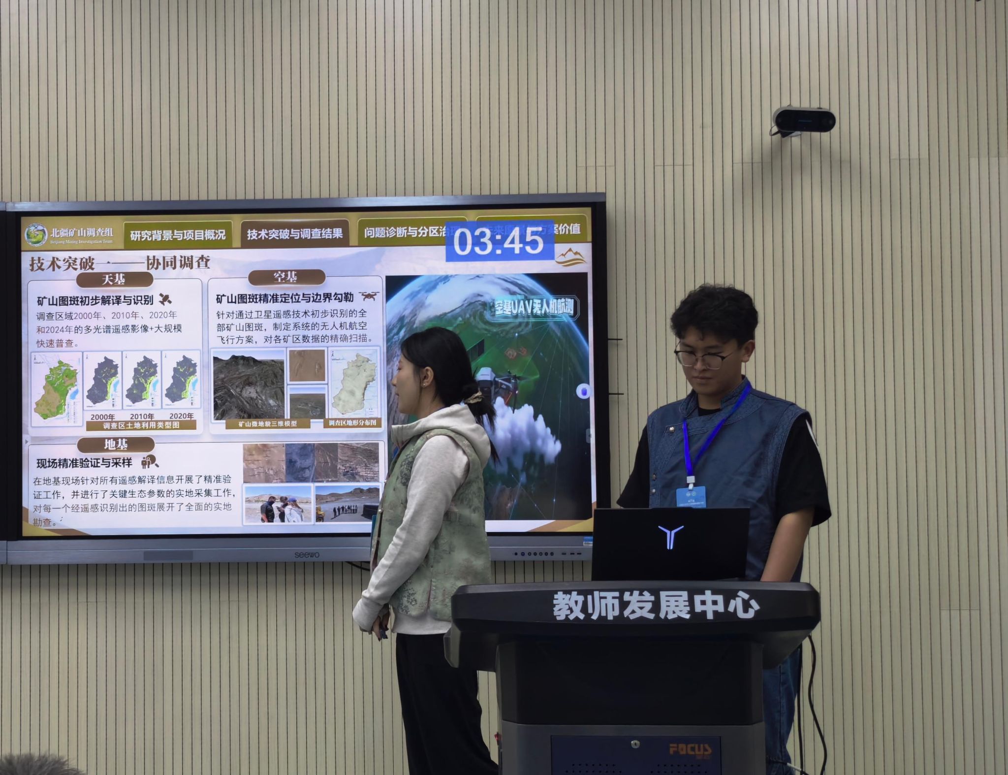 比赛中,学院北疆矿山调查团队(成员:黄保朝、刘姝含、白玲玲、高兴、王晓阳、张欣怡,指导老师:王桂华、杨霞)展现了扎实的专业功底、敏锐的问题洞察力和卓越的团队协作能力。他们的作品 《中国北方历史遗留矿山生态状况调查研究—以阿拉善左旗为例》,聚焦当前国家生态文明建设中的“老大难”问题——“历史遗留矿山”,通过严谨的实地调研、创新的调查分析方法和可行的政策建议,赢得了评委们的高度认可。
