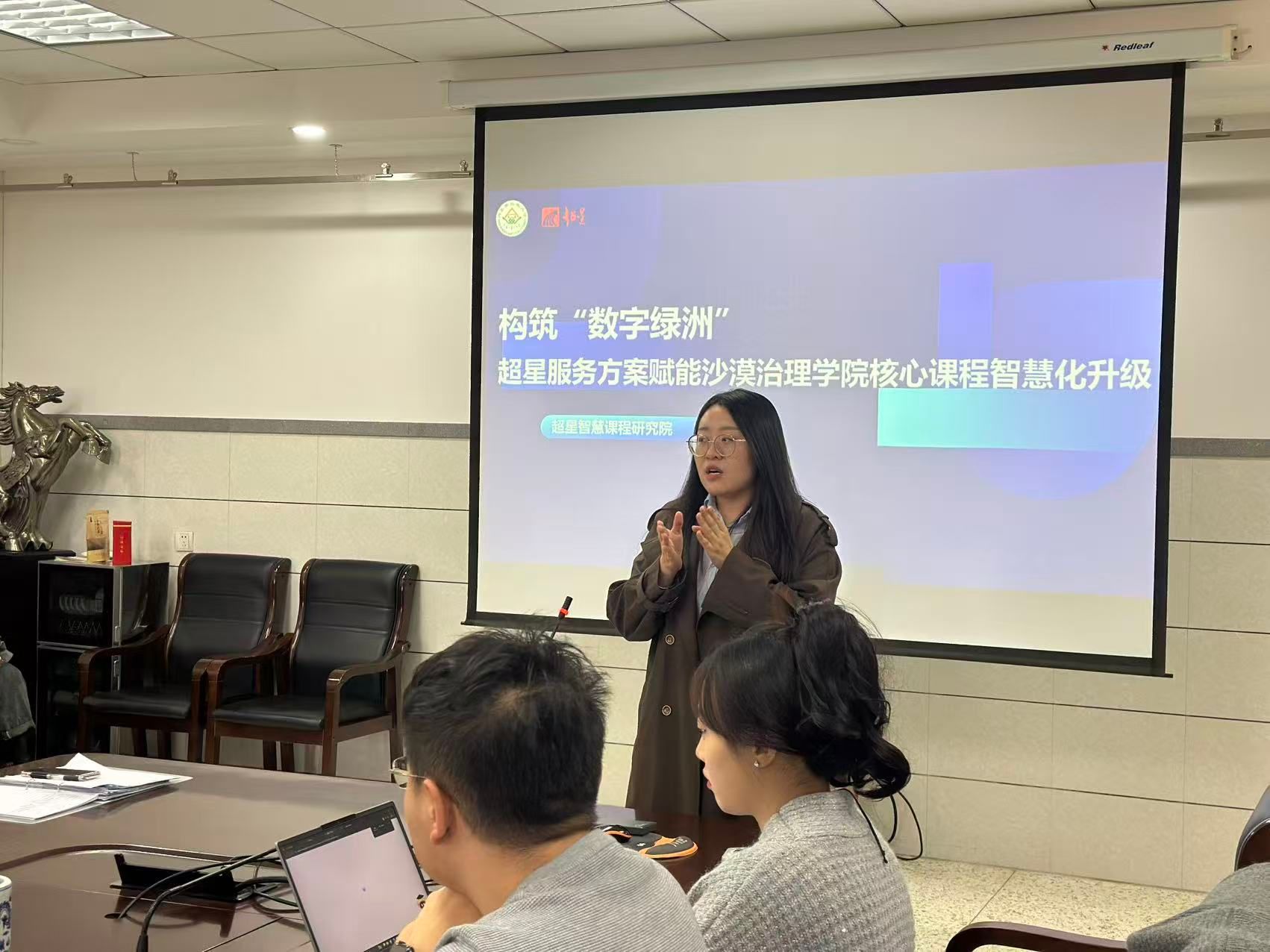 10月30日下午15:30,沙漠治理学院教师发展分中心在生命科学楼546会议室成功举办了“AI赋能智慧课程建设”专题培训。本次培训特邀超星集团智慧课程研究院高级课程顾问冯洁与郭丹琪两位老师担任主讲。