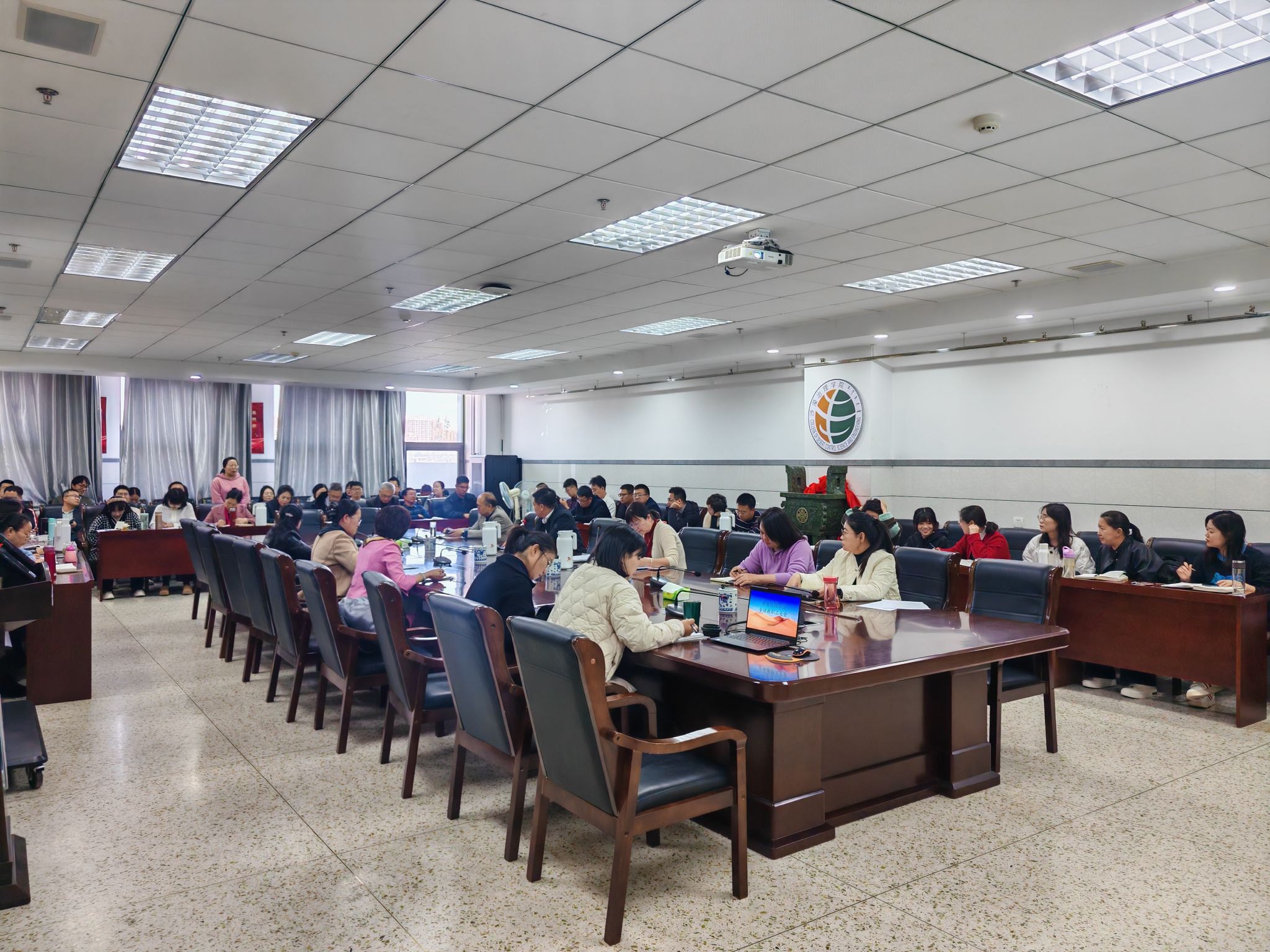 2025年10月30日14时30分,学院在546会议室召开全体教职工大会,学院党委书记彭静主持会议,全体教职工参会,会议围绕人才引育、教学建设、科研师资、师德师风、学生安全与行政学习多领域重点工作开展部署。