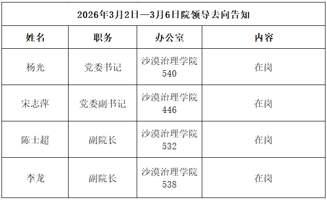 2026年3月2日—3月6日院领导去向告知